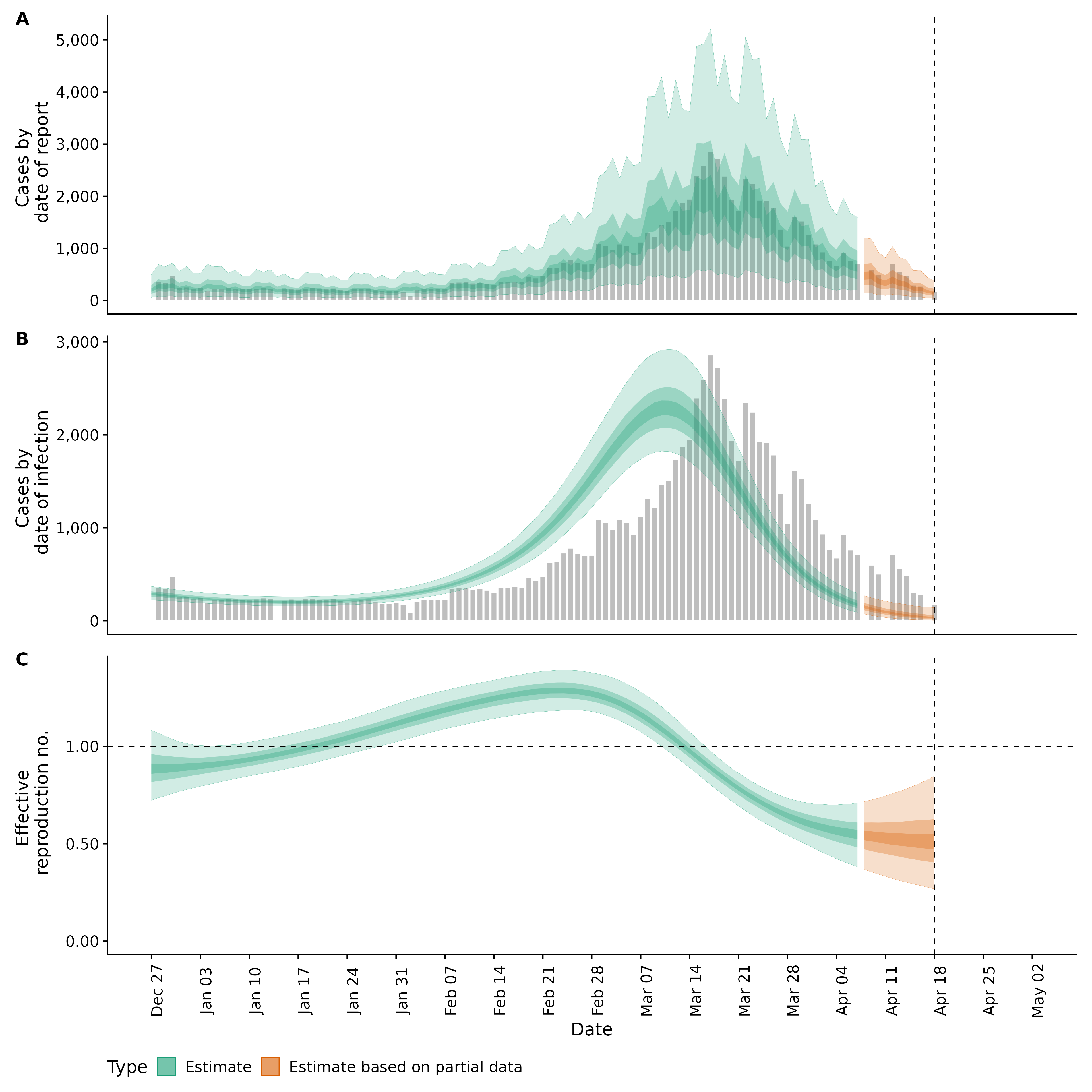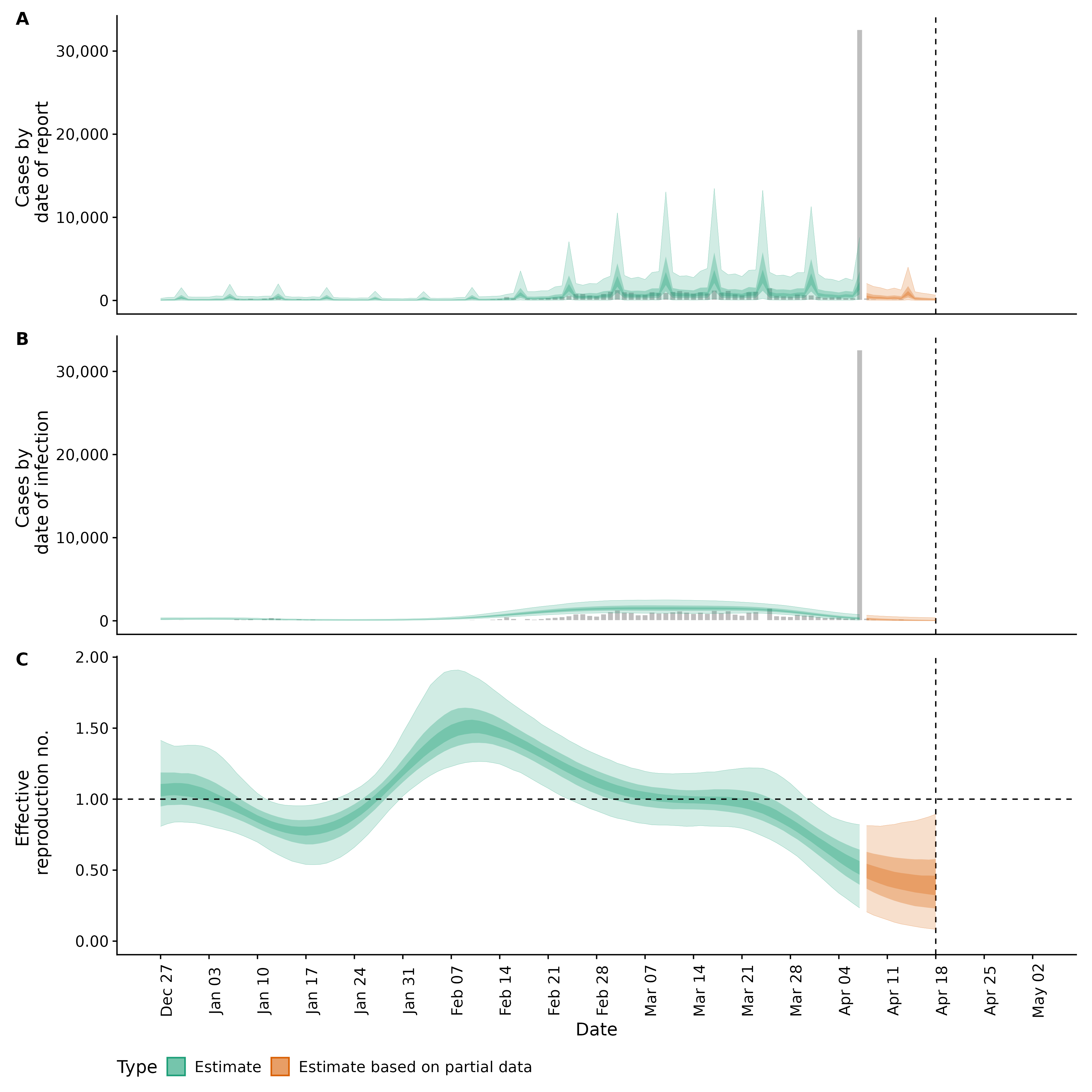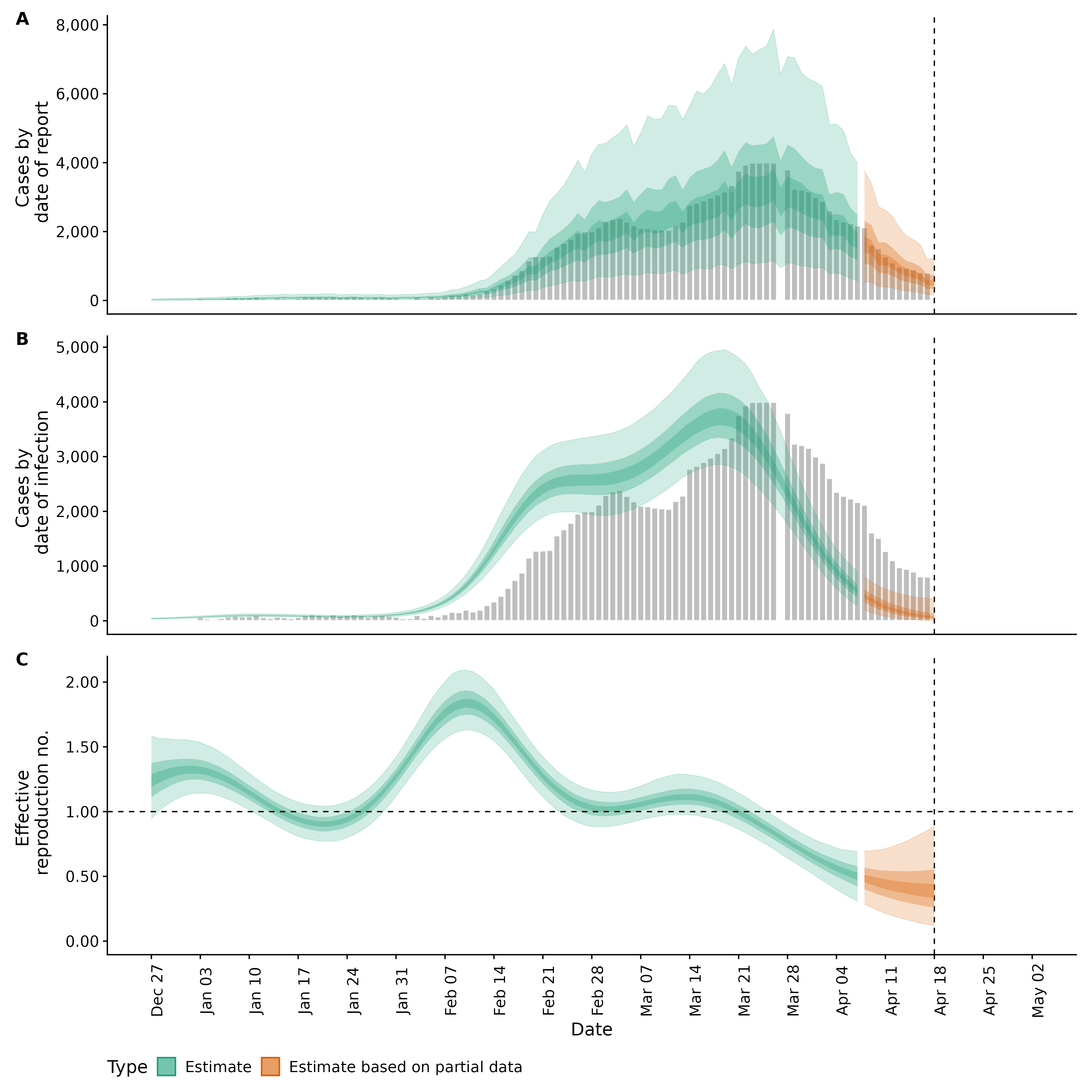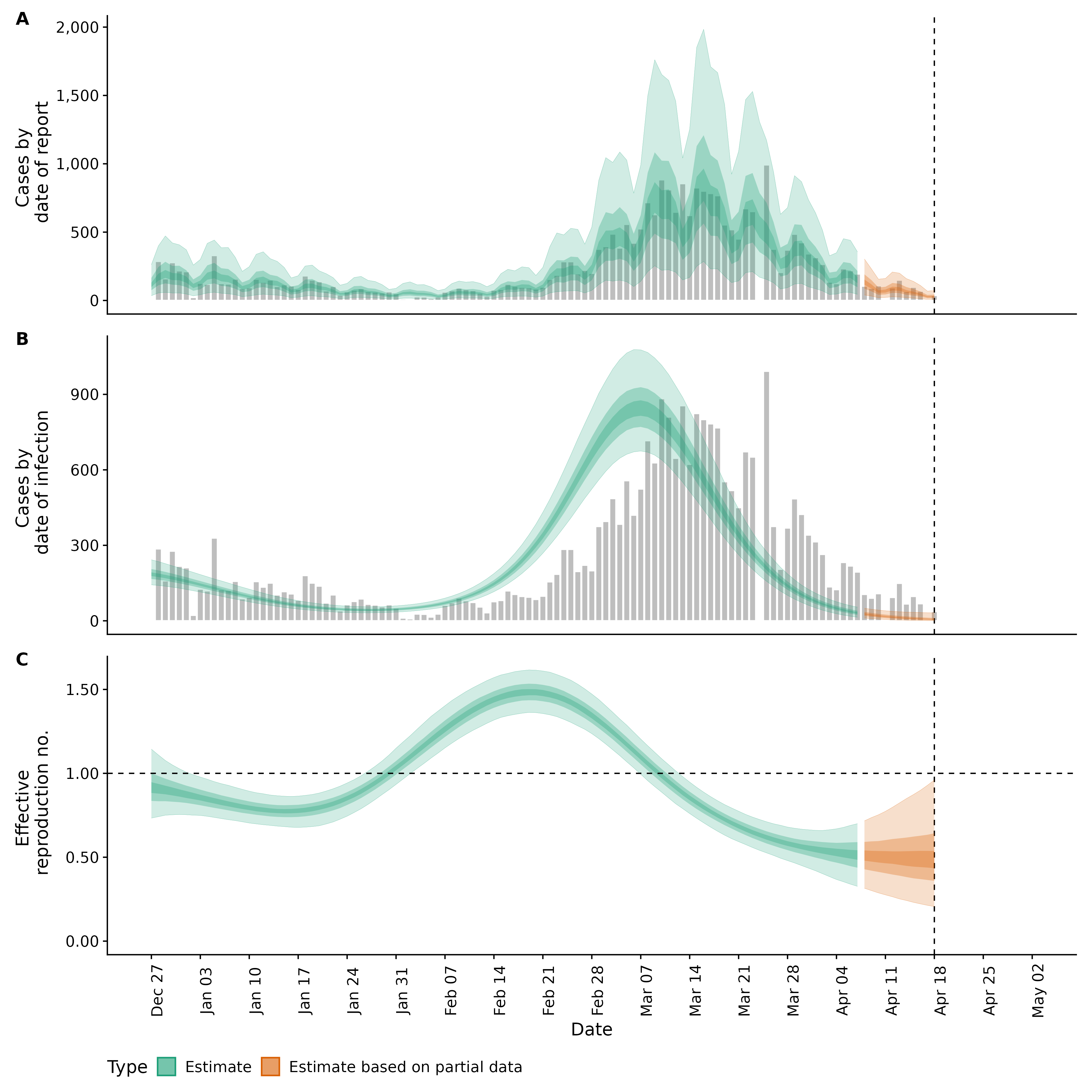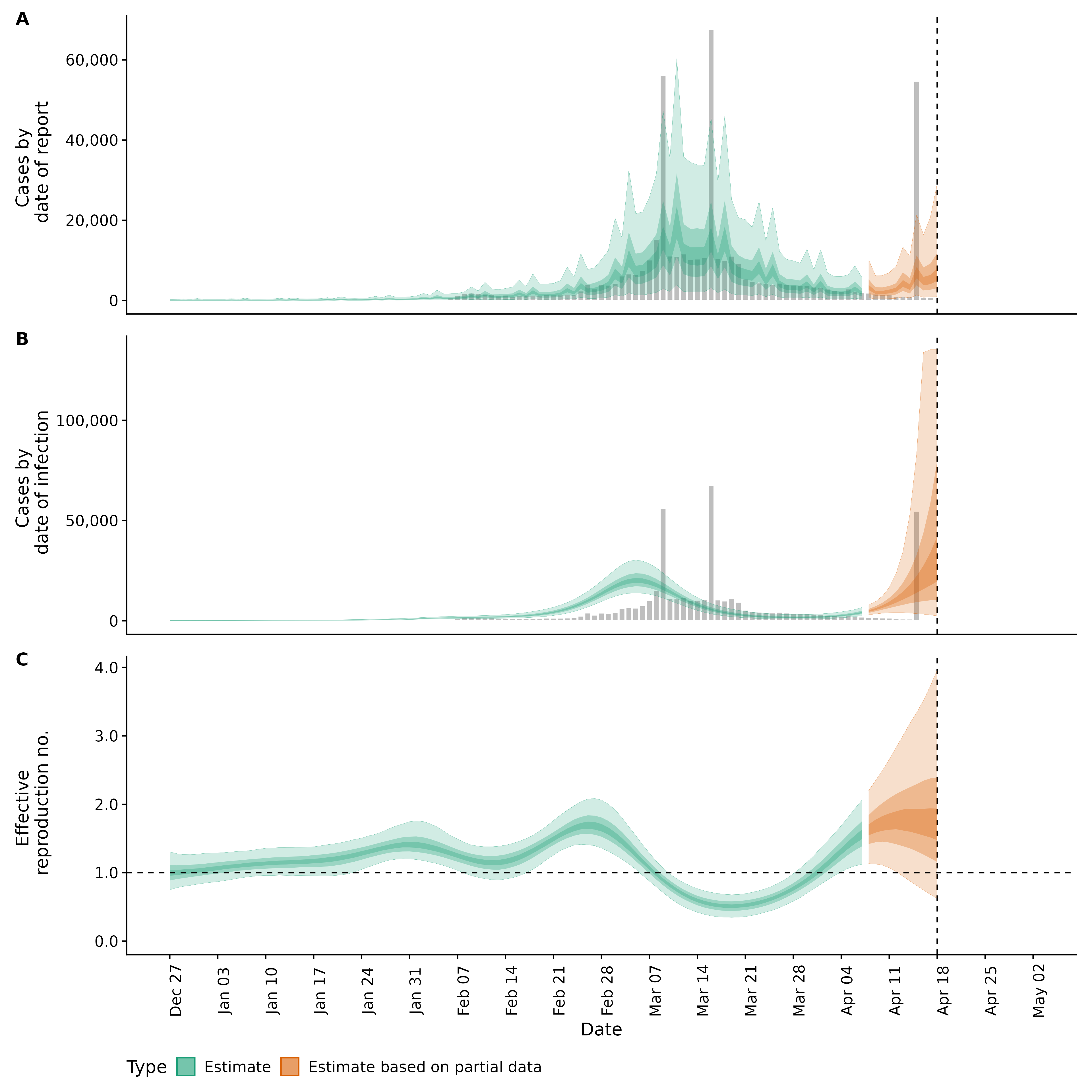 Identifying changes in the reproduction number, rate of spread, and doubling time during the course of the COVID-19 outbreak whilst accounting for potential biases due to delays in case reporting both nationally and subnationally. These results are impacted by changes in testing effort, increases and decreases in testing effort will increase and decrease reproduction number estimates respectively.