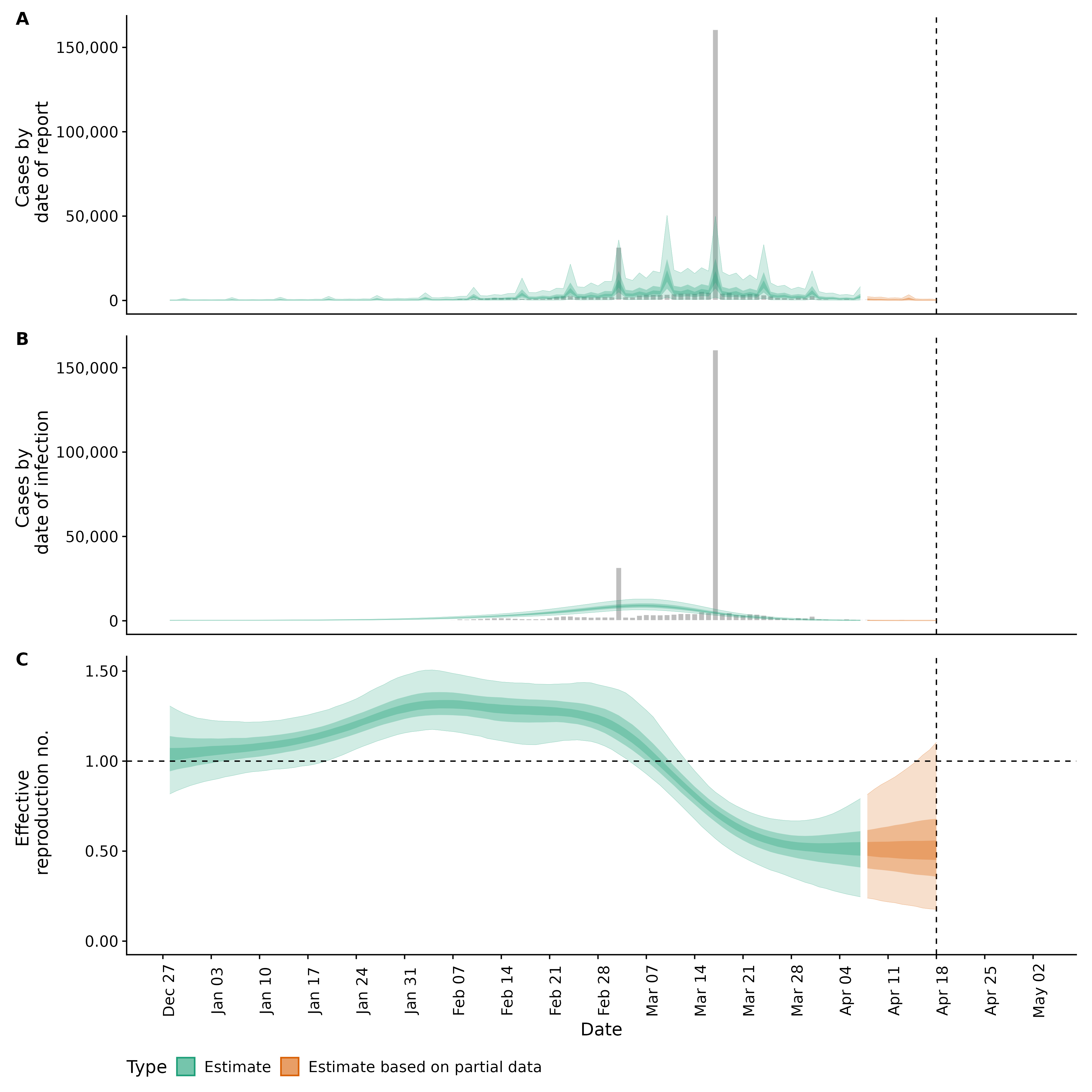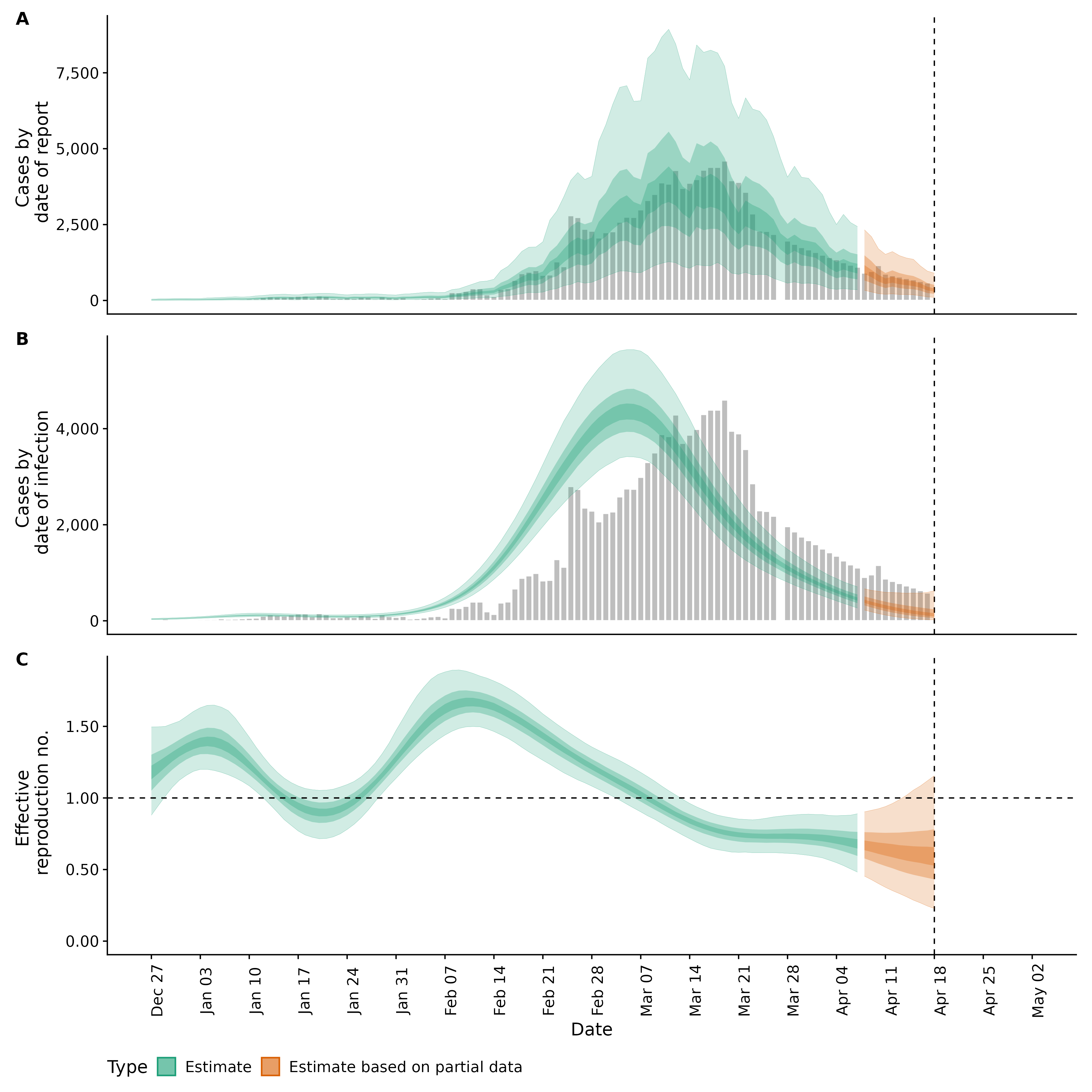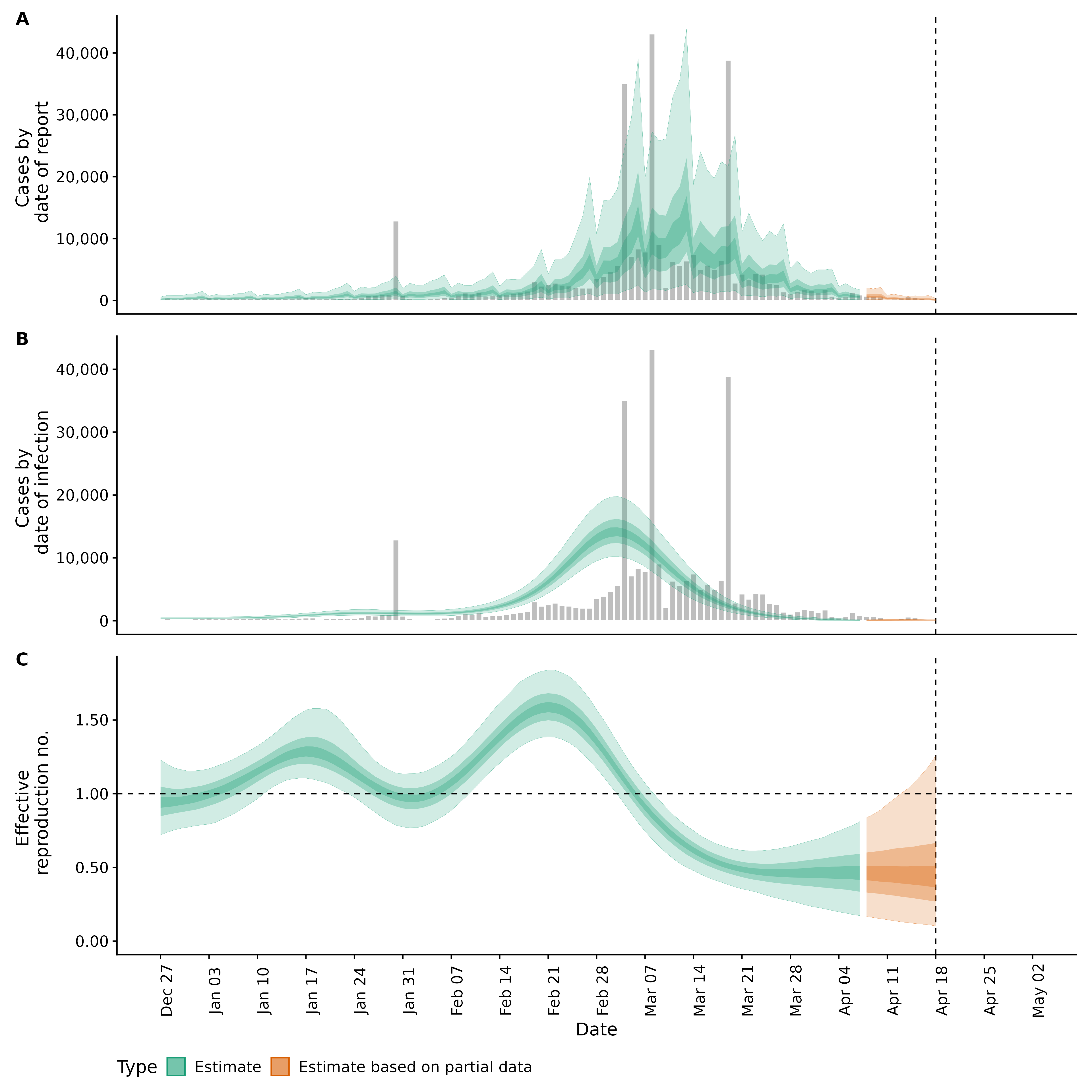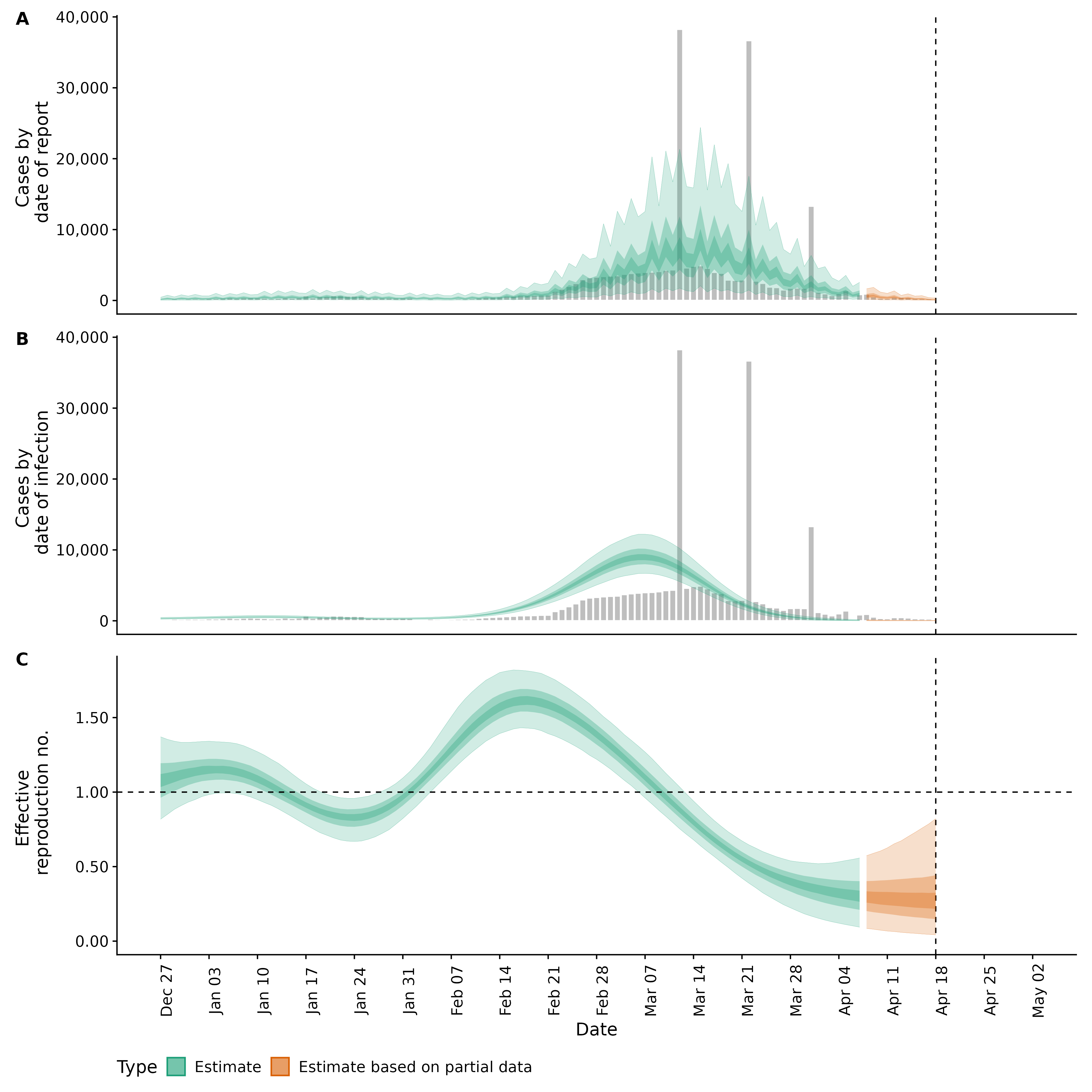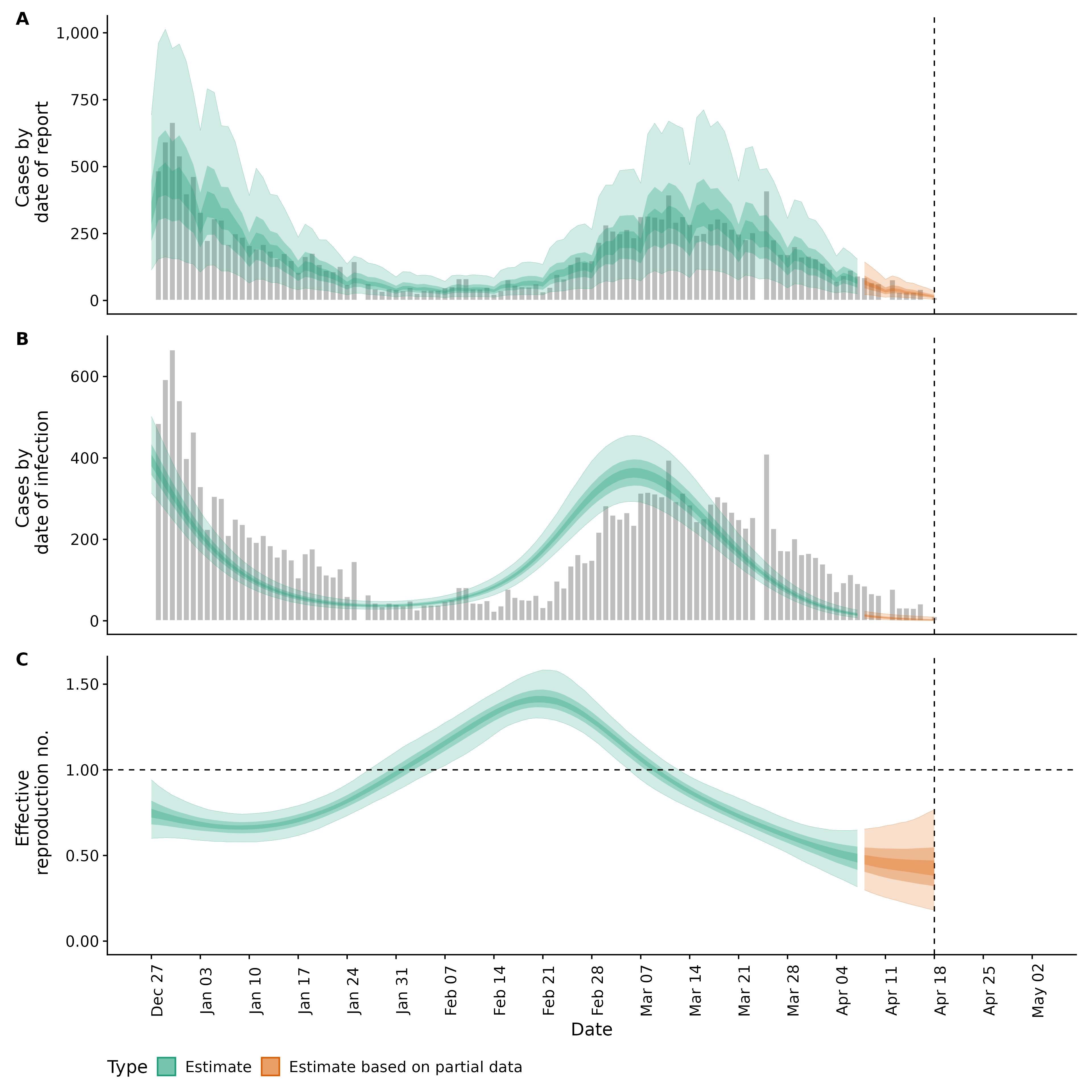 Identifying changes in the reproduction number, rate of spread, and doubling time during the course of the COVID-19 outbreak whilst accounting for potential biases due to delays in case reporting both nationally and subnationally. These results are impacted by changes in testing effort, increases and decreases in testing effort will increase and decrease reproduction number estimates respectively.