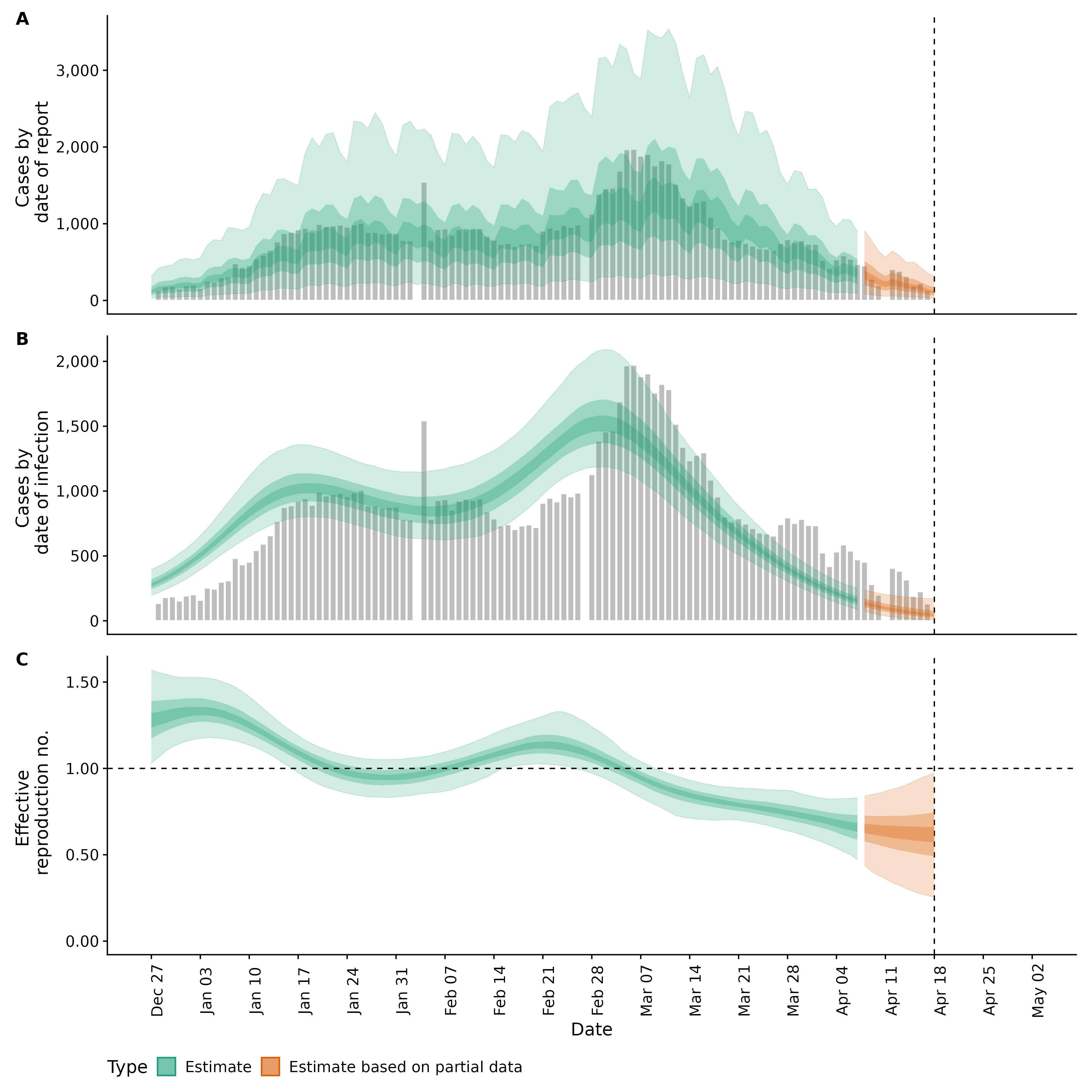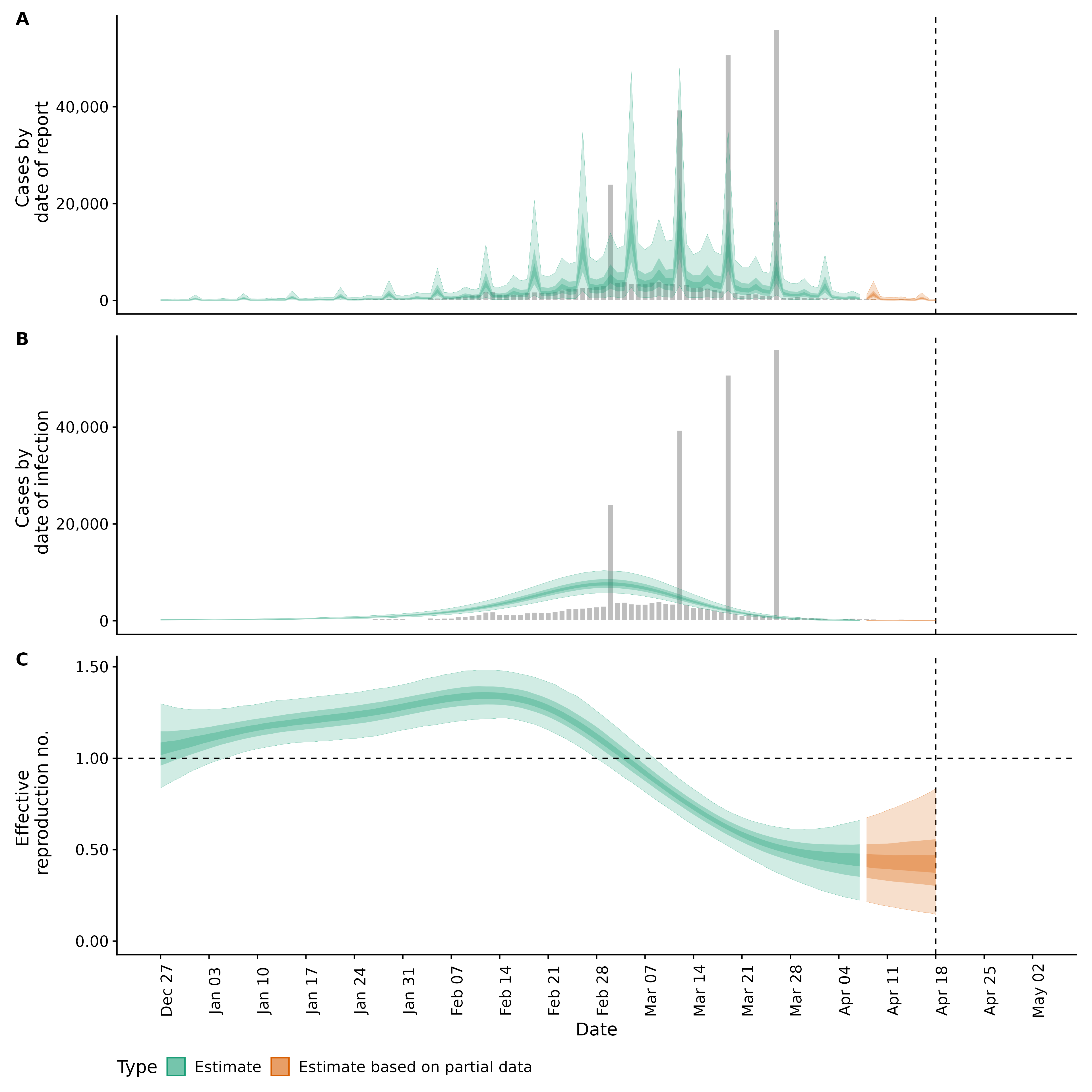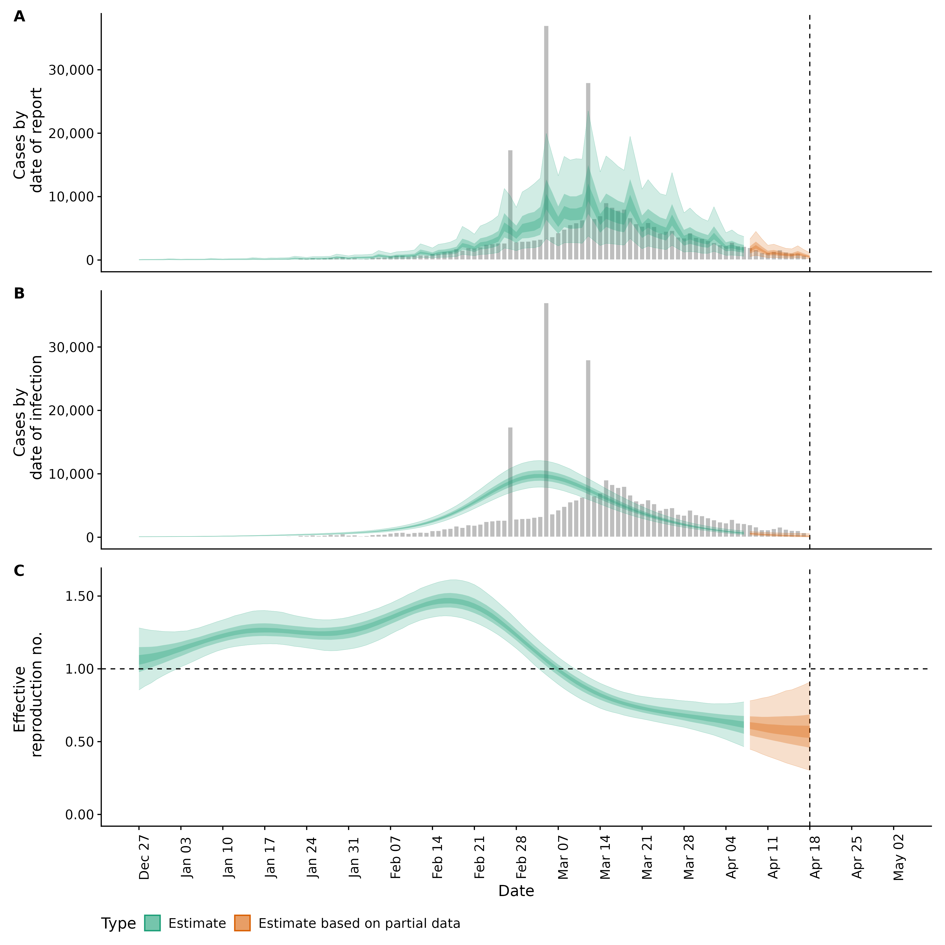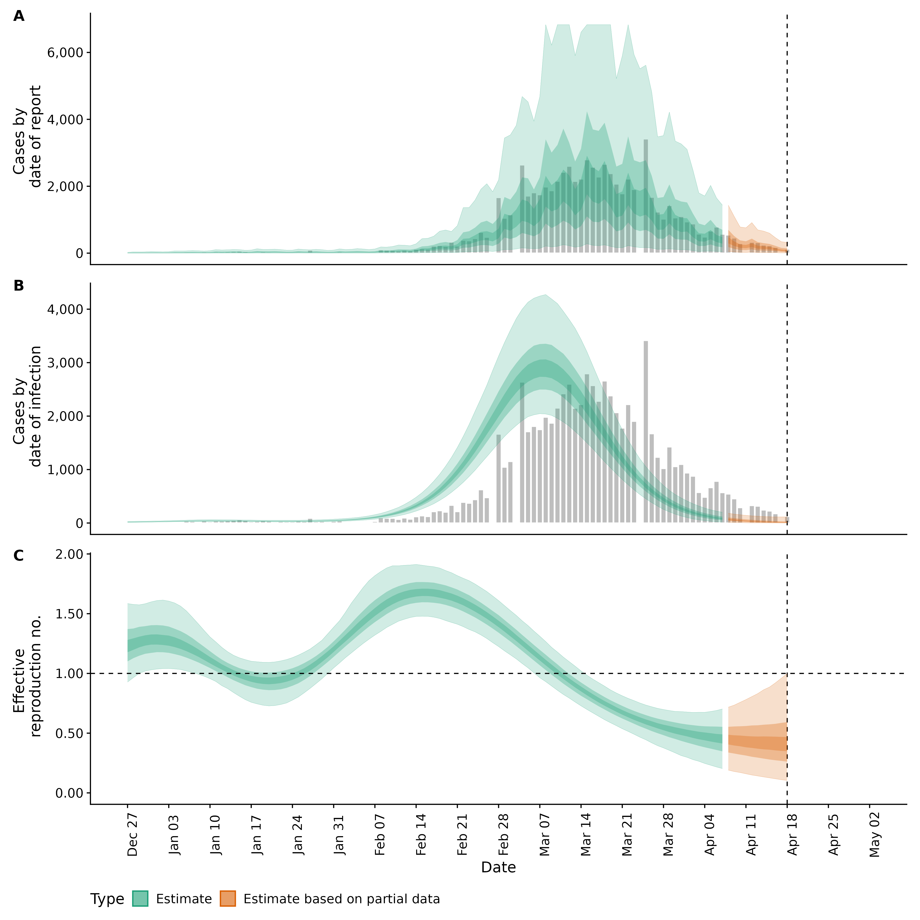 Identifying changes in the reproduction number, rate of spread, and doubling time during the course of the COVID-19 outbreak whilst accounting for potential biases due to delays in case reporting both nationally and subnationally. These results are impacted by changes in testing effort, increases and decreases in testing effort will increase and decrease reproduction number estimates respectively.
