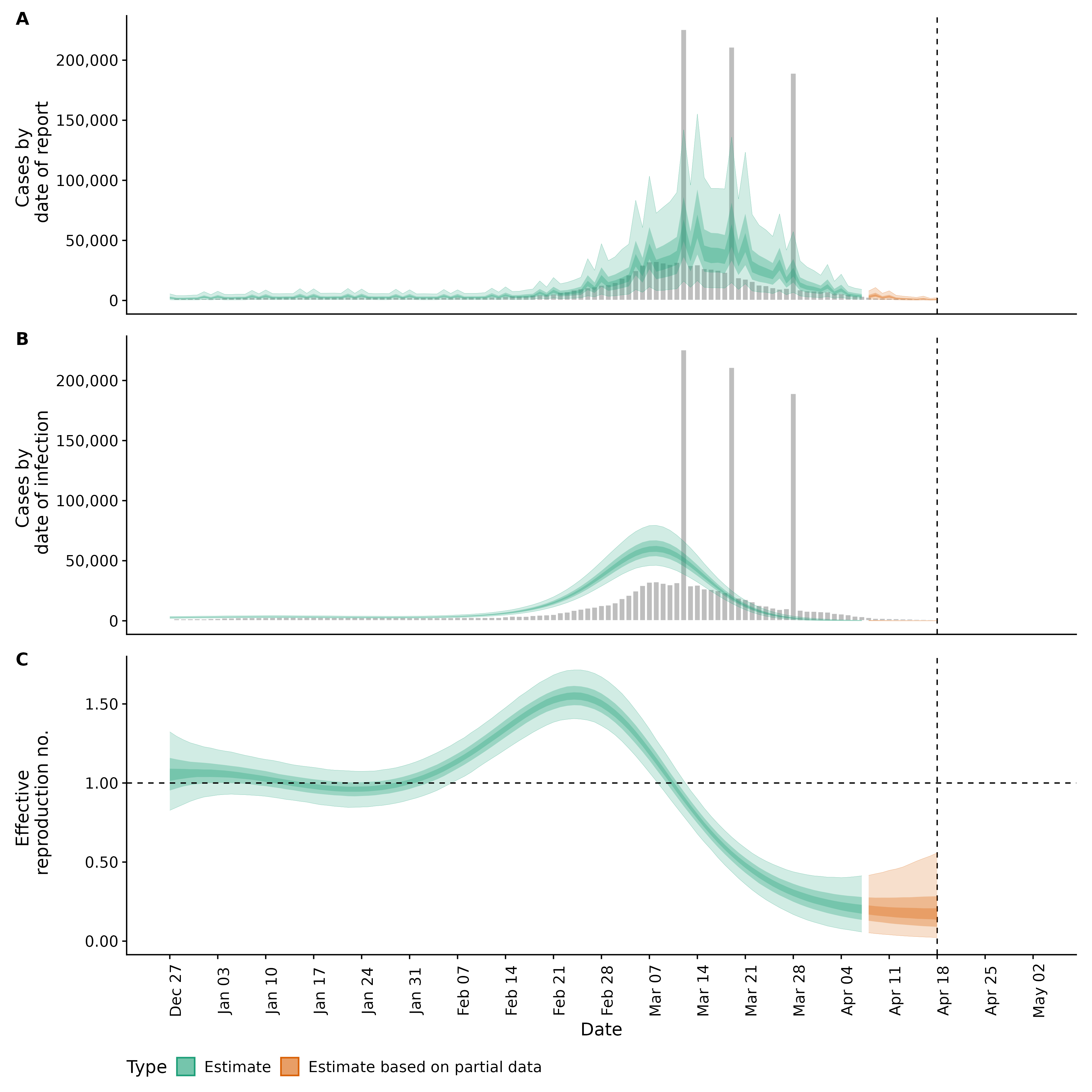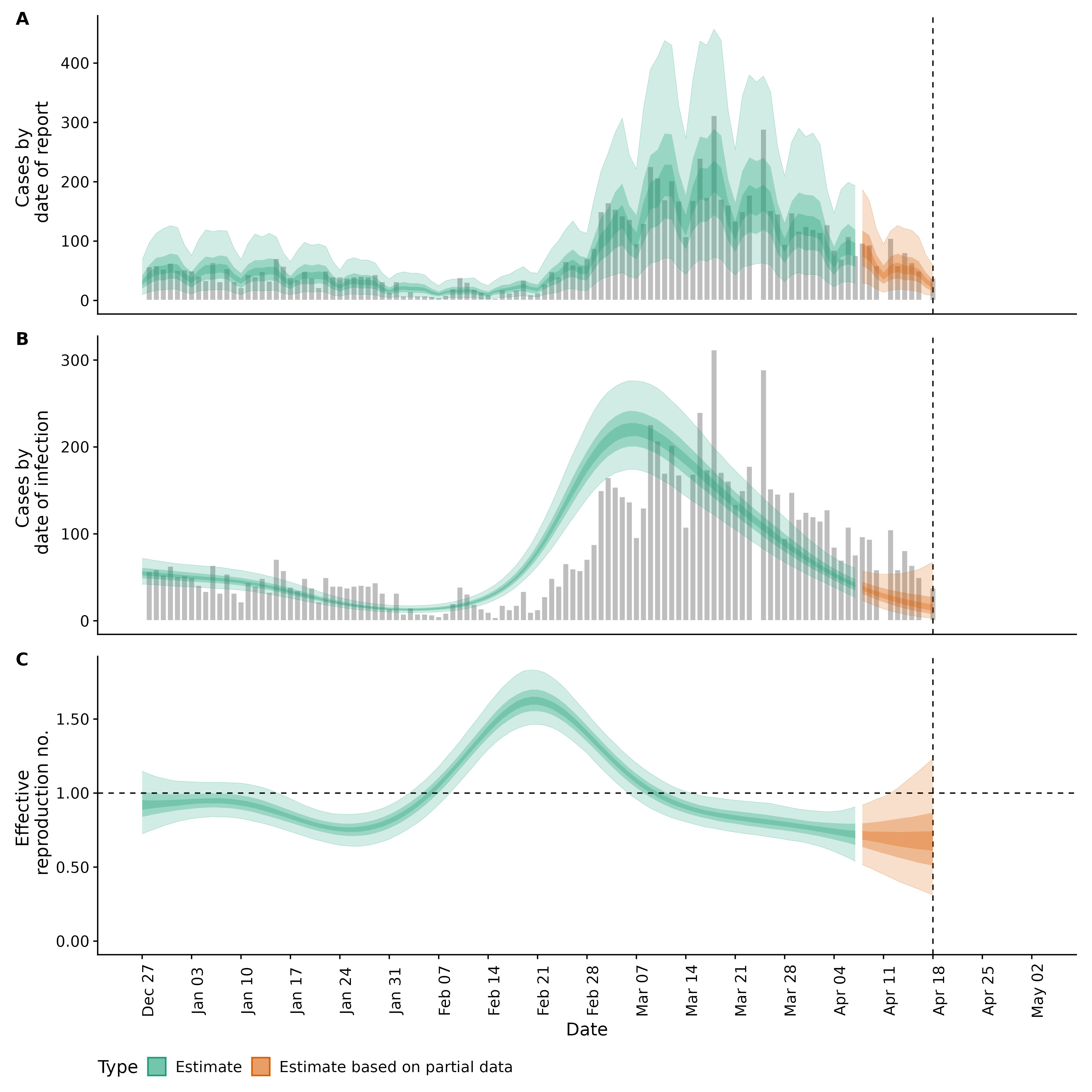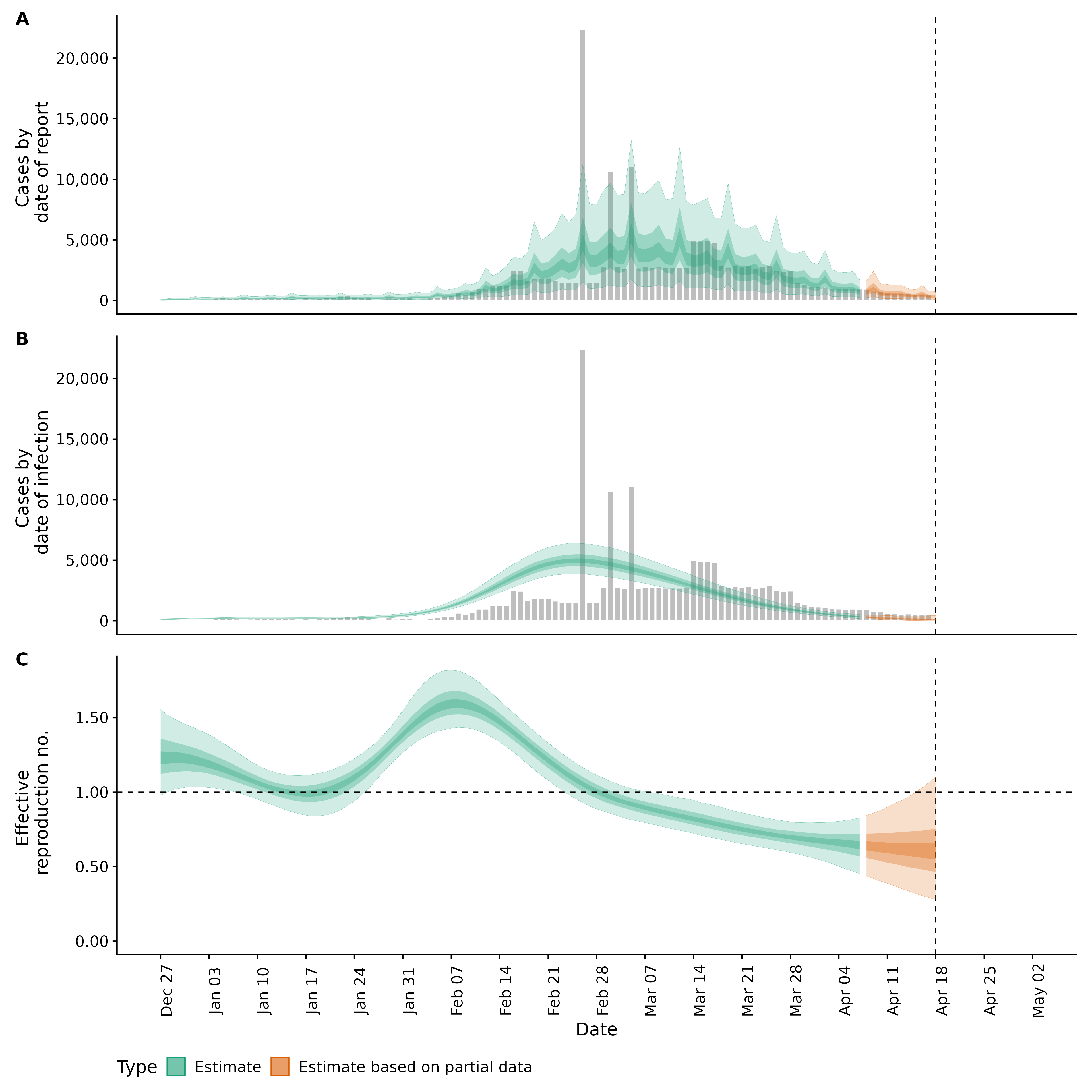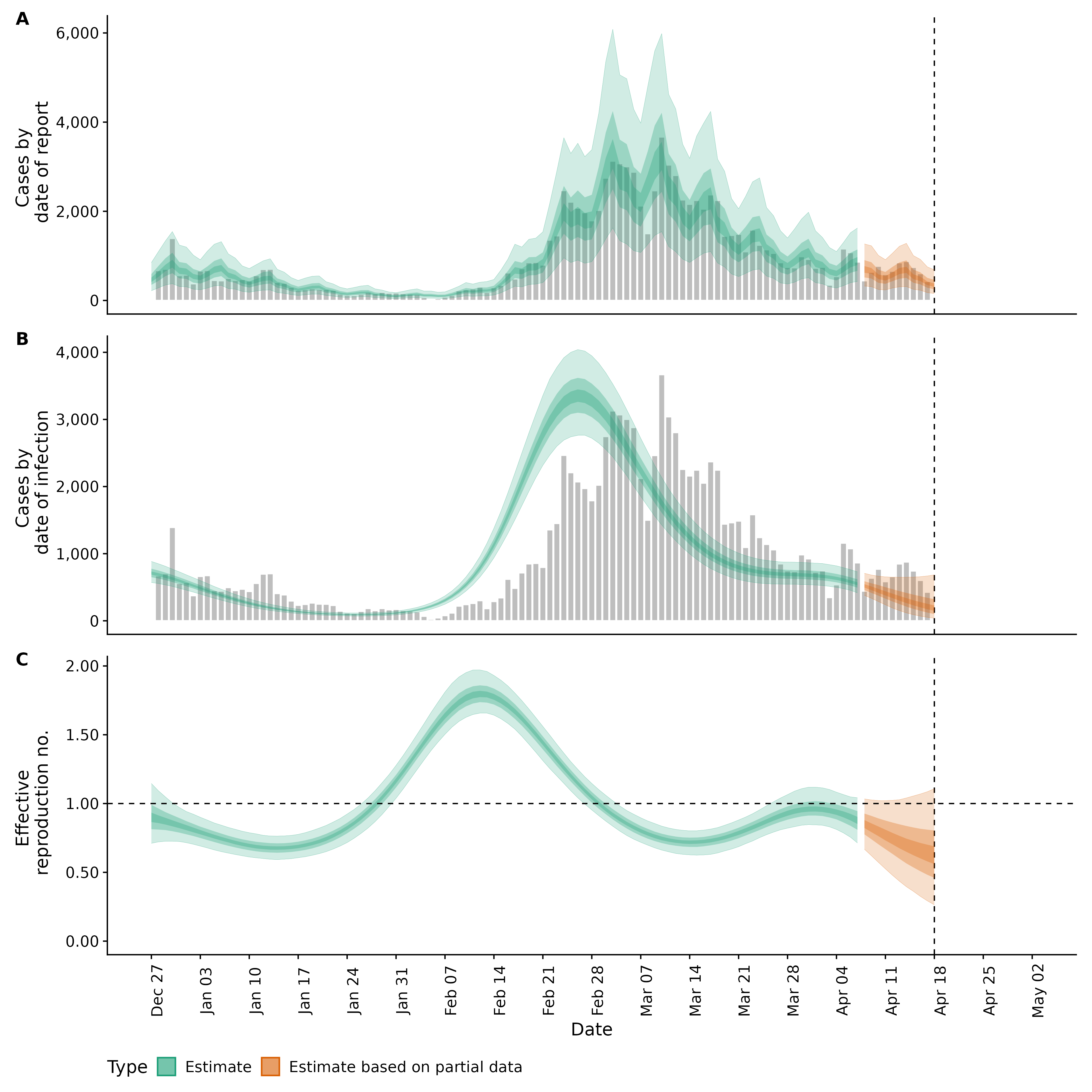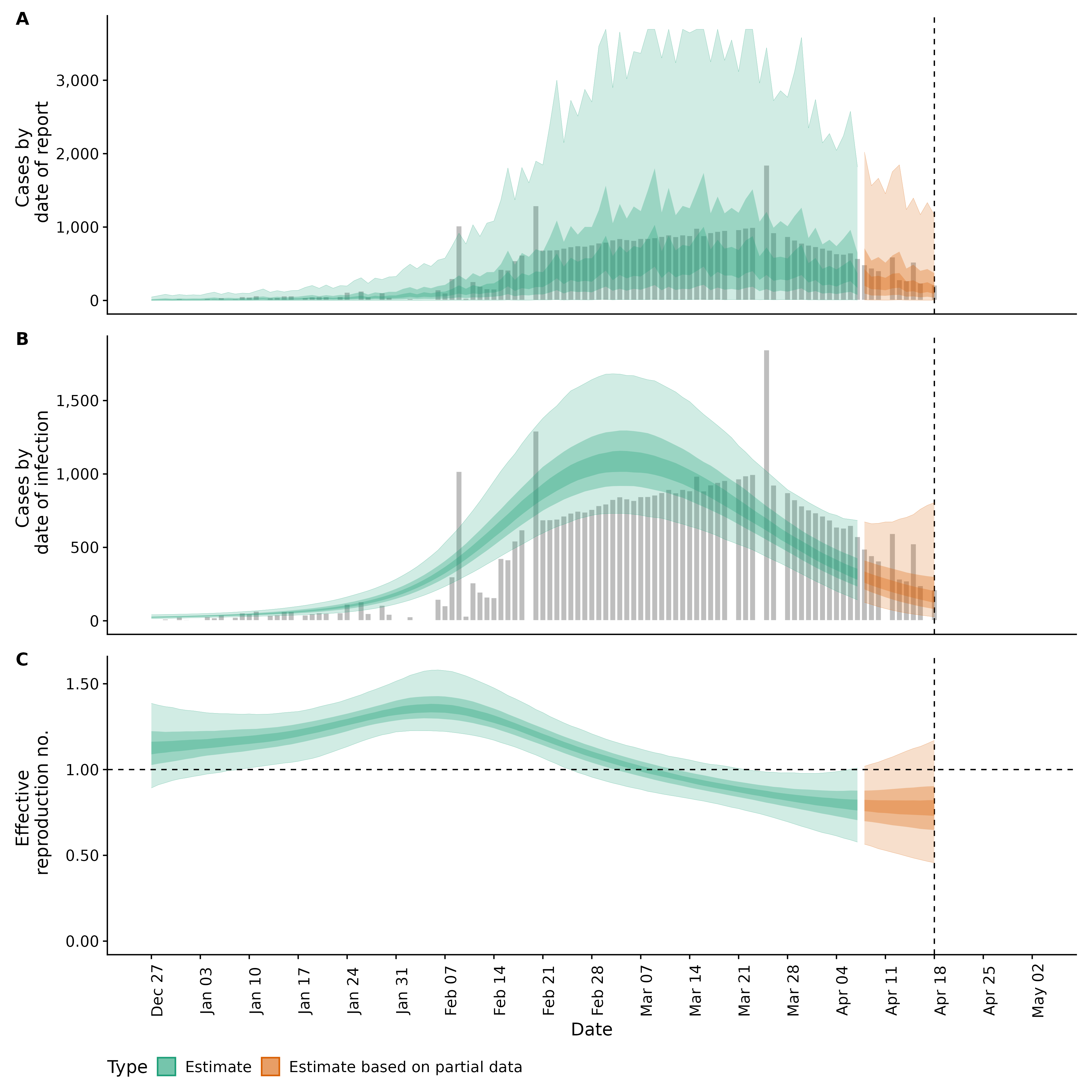 Identifying changes in the reproduction number, rate of spread, and doubling time during the course of the COVID-19 outbreak whilst accounting for potential biases due to delays in case reporting both nationally and subnationally. These results are impacted by changes in testing effort, increases and decreases in testing effort will increase and decrease reproduction number estimates respectively.