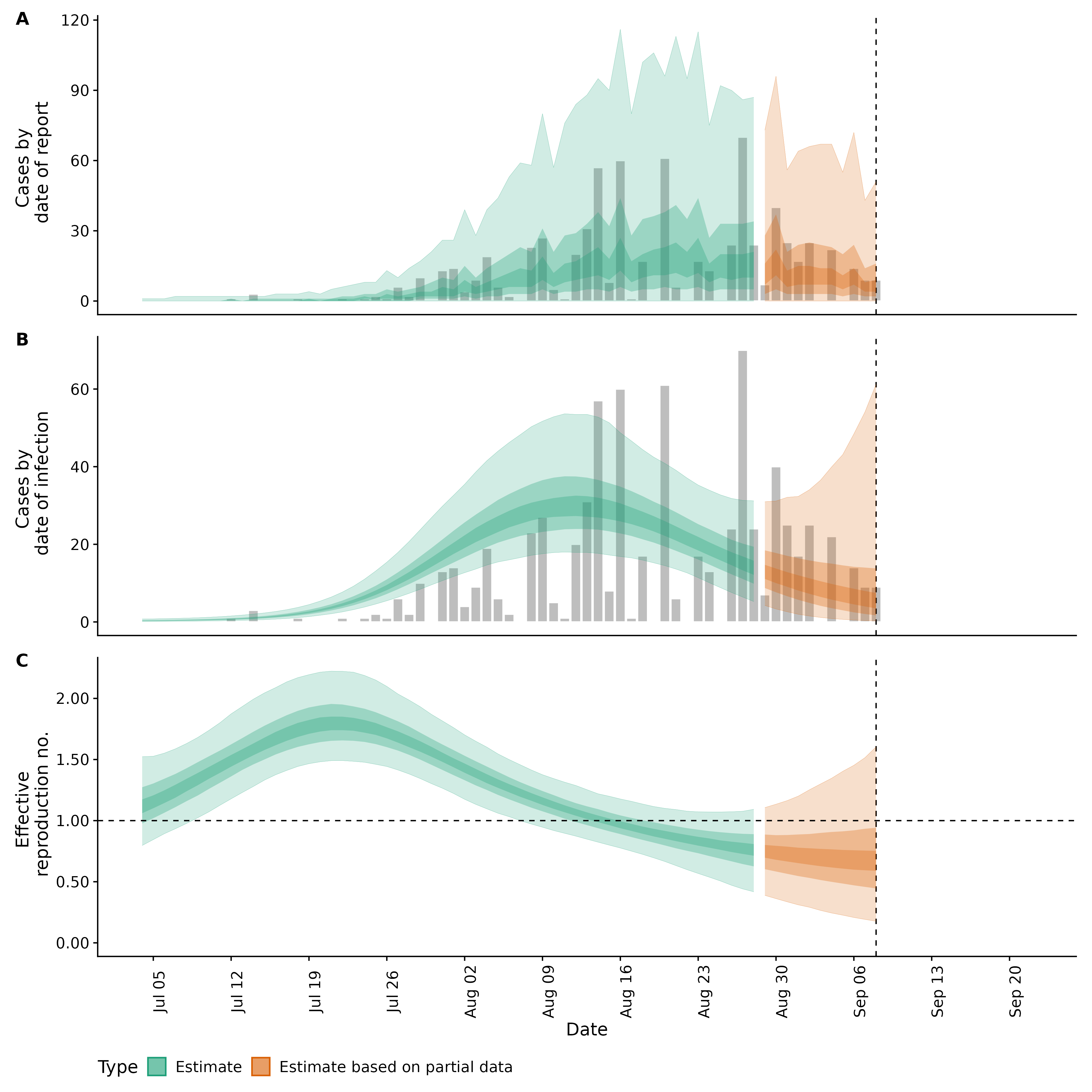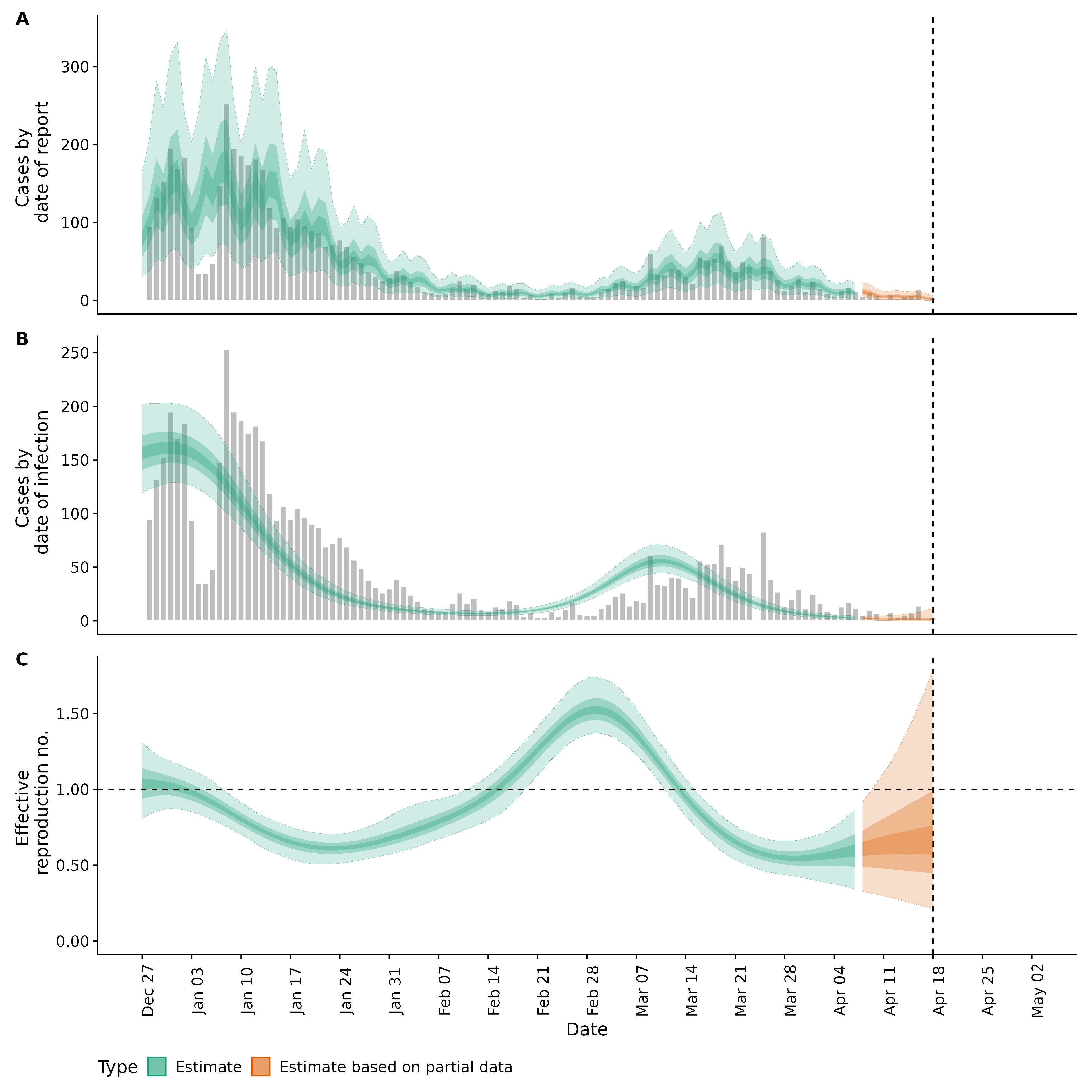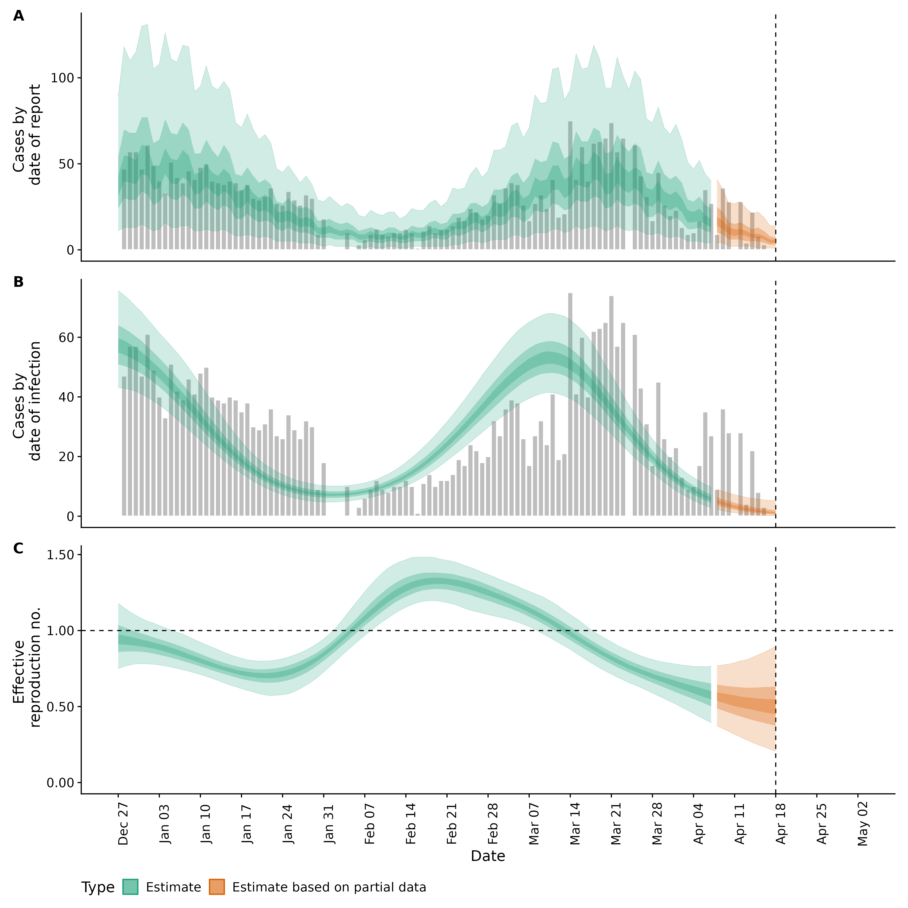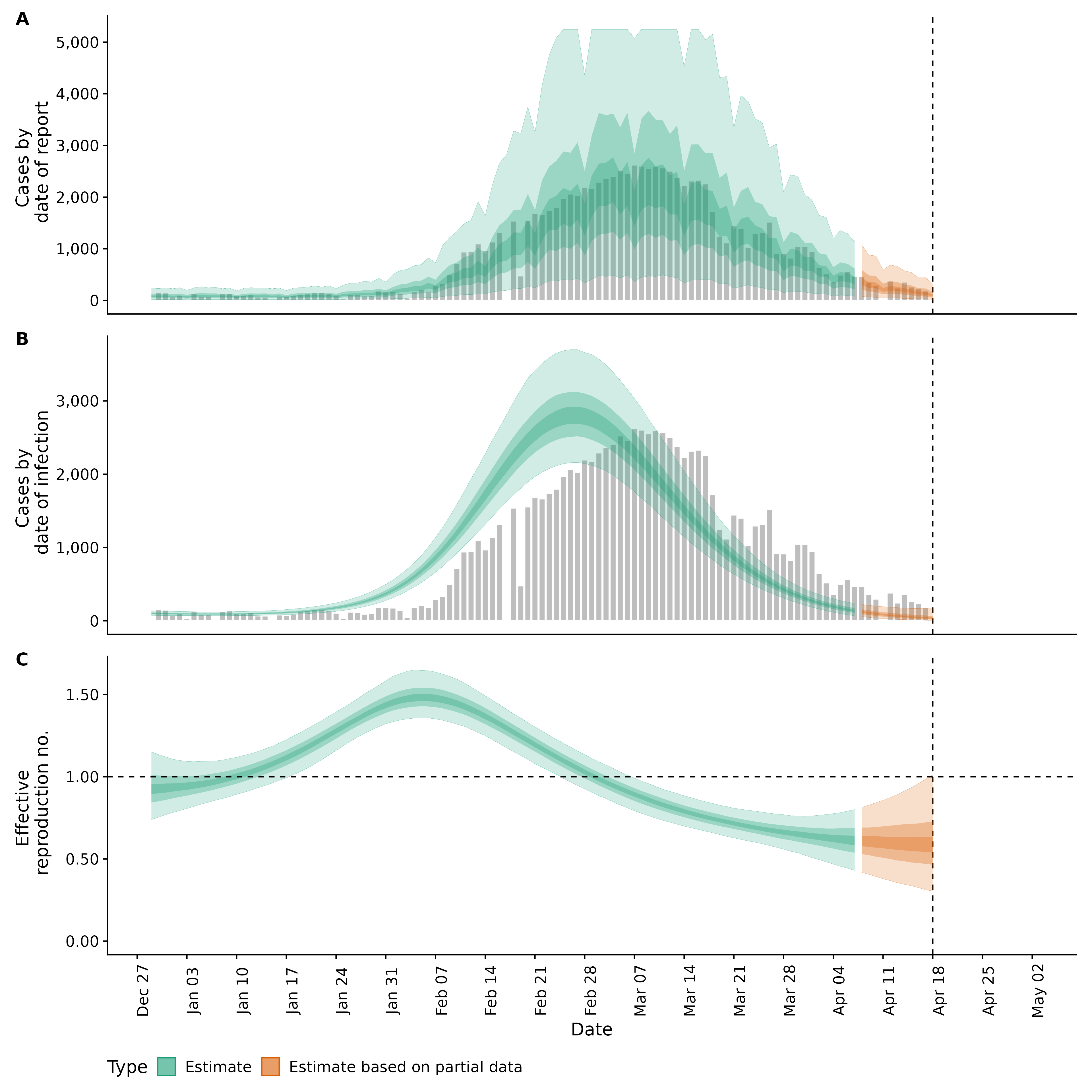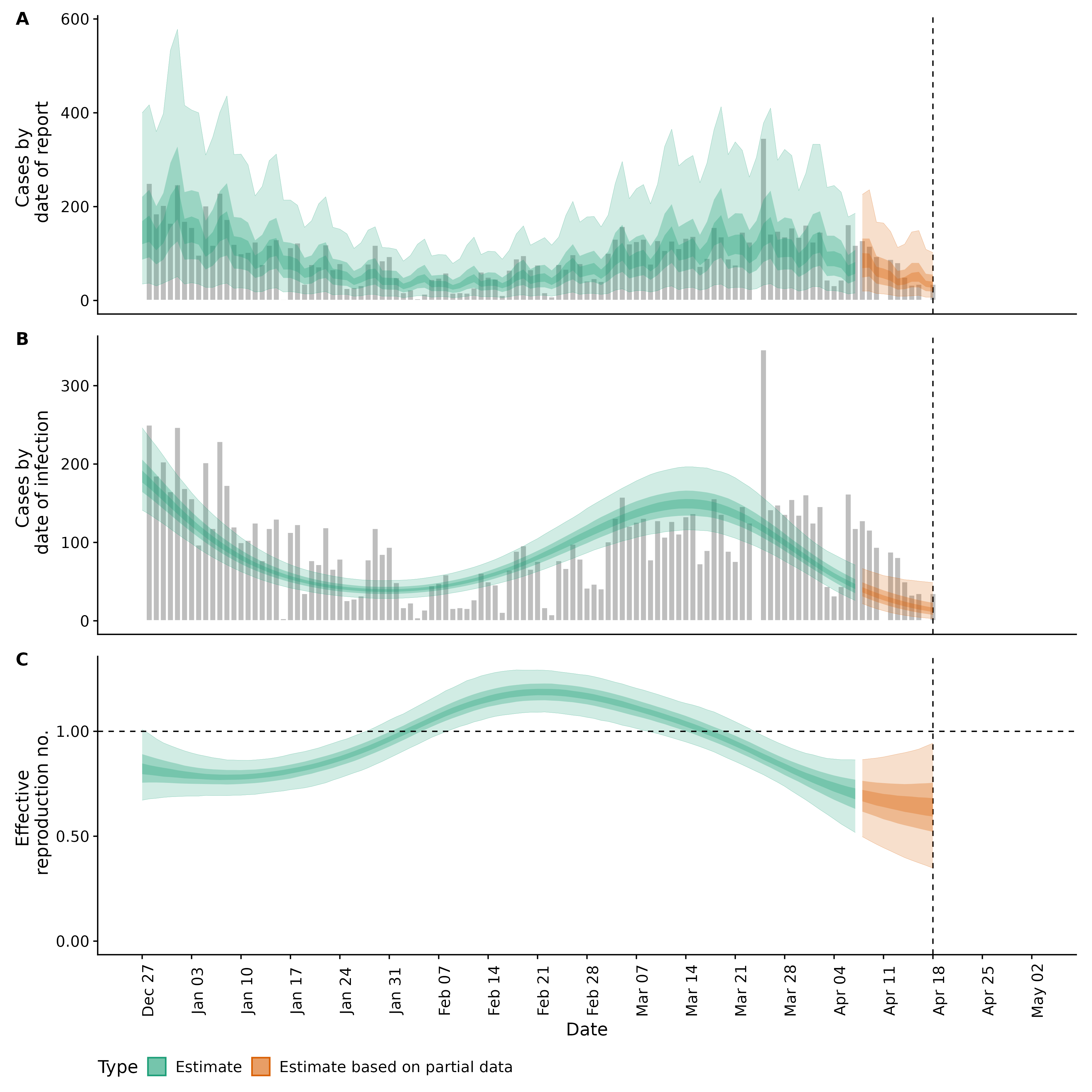 Identifying changes in the reproduction number, rate of spread, and doubling time during the course of the COVID-19 outbreak whilst accounting for potential biases due to delays in case reporting in Backan. These results are impacted by changes in testing effort, increases and decreases in testing effort will increase and decrease reproduction number estimates respectively.
