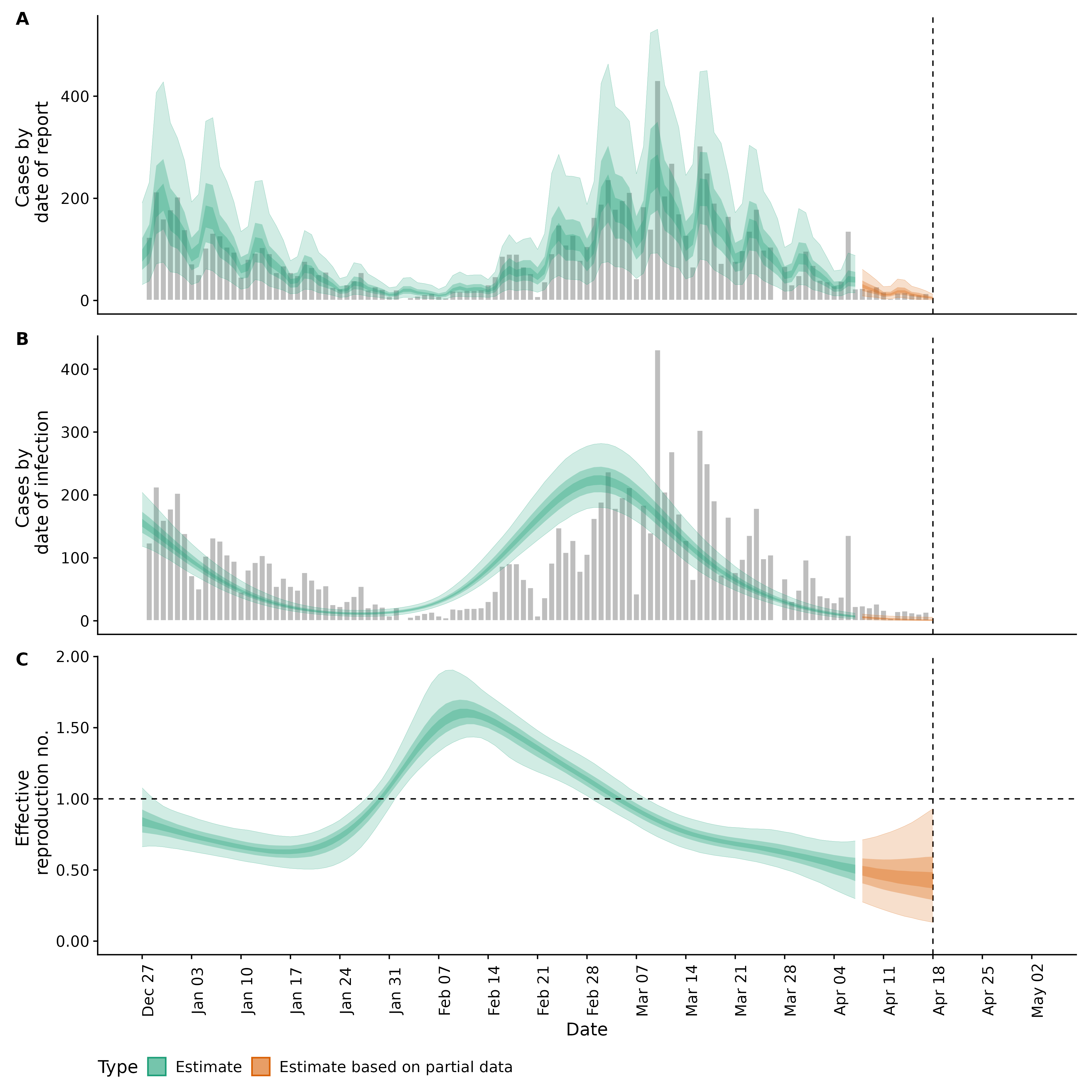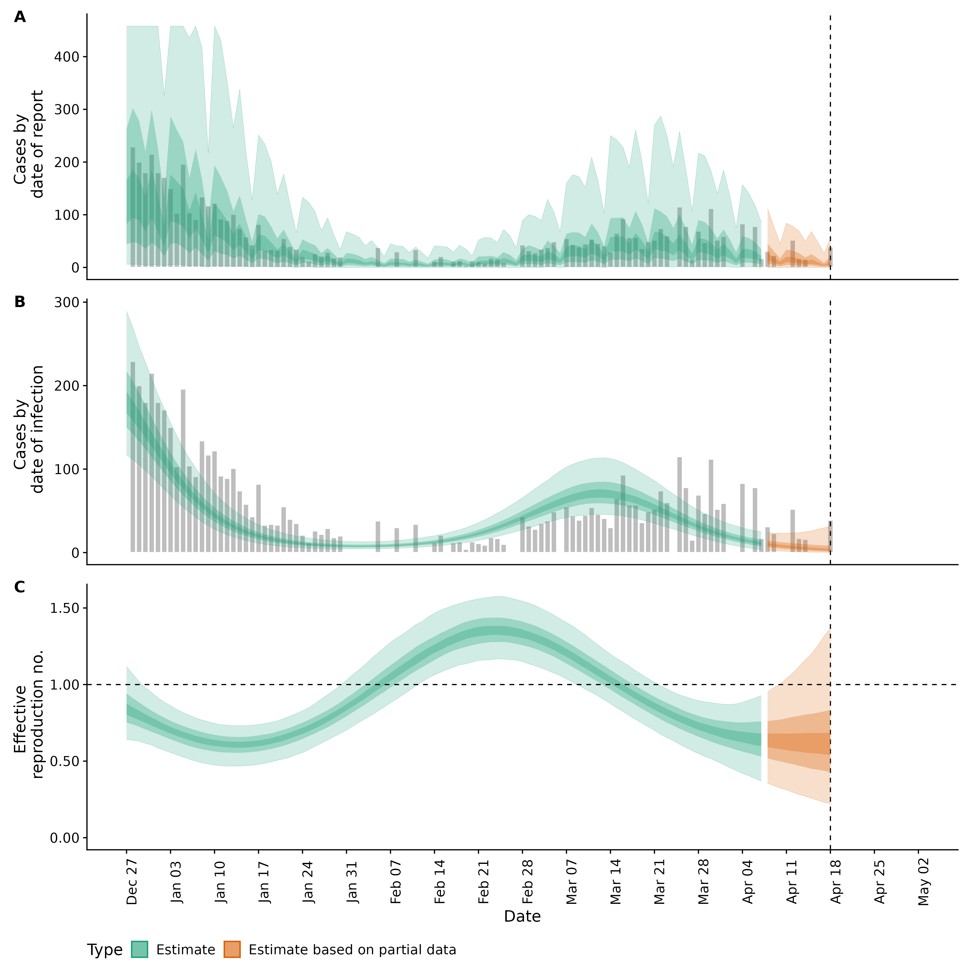 Identifying changes in the reproduction number, rate of spread, and doubling time during the course of the COVID-19 outbreak whilst accounting for potential biases due to delays in case reporting in Langson. These results are impacted by changes in testing effort, increases and decreases in testing effort will increase and decrease reproduction number estimates respectively.